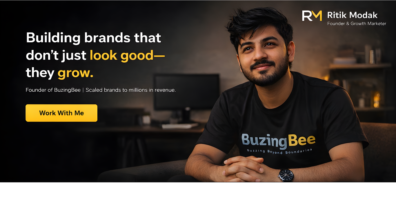 I’m Ritik Modak — founder of Buzingbee Marketing Agency — and I work with brands that are tired of vanity metrics, random posting, and agencies that talk big but deliver noise.